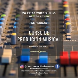 Oleiros, 16 de xullo de 2021-. O vindeiro 26 de xullo comeza un curso de produción musical dirixido a mozos e mozas de entre 14 e 30 anos. Esta actividade desenvolverase na Casa da Mocidade das Pedras en horario de 11:30 a 13:00 horas.