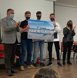Oleiros, 25 de maio de 2021-. Tomás López Vizcaíno, Roi Suárez López e Diego Vidal Gil, xunto coa profesora Consuelo Castro, desenvolveron unha iniciativa de reciclaxe para concienciar da súa importancia aos seus compañeiros e compañeiras que consistía en premiar cunha viaxe ás tres clases que máis plástico conseguisen recoller. Os primeiros clasificados son o alumnado de 2º A de bacharelato, que irá de viaxe ás Cíes; segundo foi 2º E da ESO, que terá unha viaxe ás dunas de Corrubedo; e terceiros foron os rapaces e rapazas de 1º A de bacharelato, que irán de excursión á Costa da Morte.