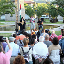 Tras a intervención do alcalde, a cantante de orixe palestina Najla Shami e o músico brasileiro Sergio Tannus protagonizaron un emotivo concerto no que non faltou a fusión entre os ritmos árabes, a poesía galega e sons do Brasil. A penetrante voz de Shami fixo comprice ao público presente que coreu constantes mensaxes de apoio a Palestina. A actuación comezou coa lectura dun poema en árabe que foi recitado por un cidadán palestino. Shami rematou a súa fermosa interpretación con un poema de Rosalía de Castro cargado de simboloxía e con continuas referencias a paz e o respecto. Por último, e como actuación sorpresa, un dúo cubano interpretou tres cancións que puxeron o broche de ouro cunha significativa versión do trabador cubano Silvio Rodríguez. Tras o fin da música, o público coreu consignas en prol do pobo palestino.