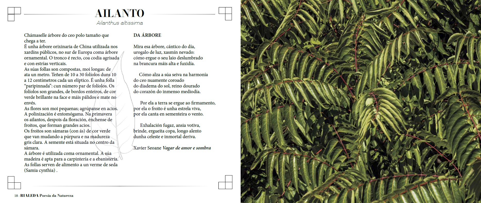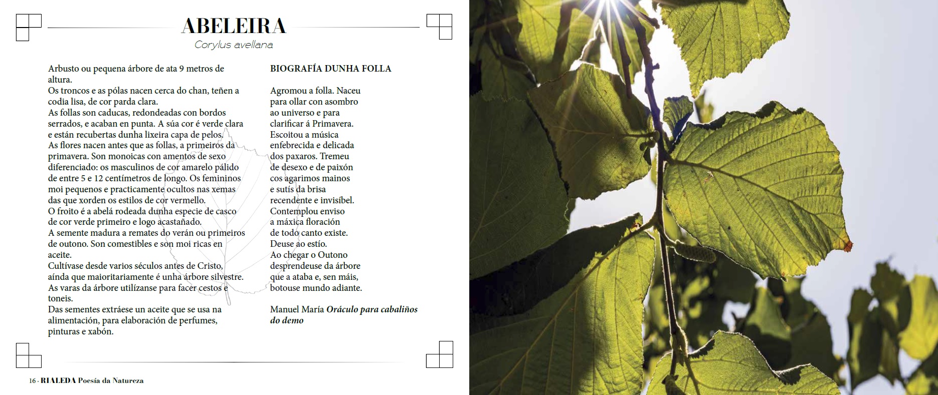 En "Rialeda, poesía da natureza" amósase unha fotografía de cada especie vexetal xunto coa descrición da planta acompañada duns versos da obra de diversos escritores e escritoras.