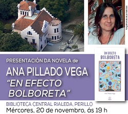 Presentación a cargo da poeta Pilar Pallarés (Premio Nacional de Poesía 2019 do Ministerio de Cultura) e da propia autora Ana Pillado Vega, acompañadas da interpretación musical de María Giménez, do grupo Manseliña, que interpretará cancións da serea Atlántida, unha das protagonistas da novela.