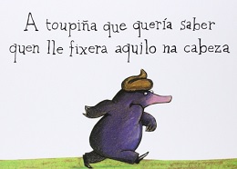 A toupiña saía do seu tobo e algo caeu na súa cabeza, a modo de pucho cheirento. Daquela, percorrerá todo o campo investigando -moi indignada- cal dos animais que alí viven lle fixera semellante agravio: a pomba, o cabalo, a lebre…