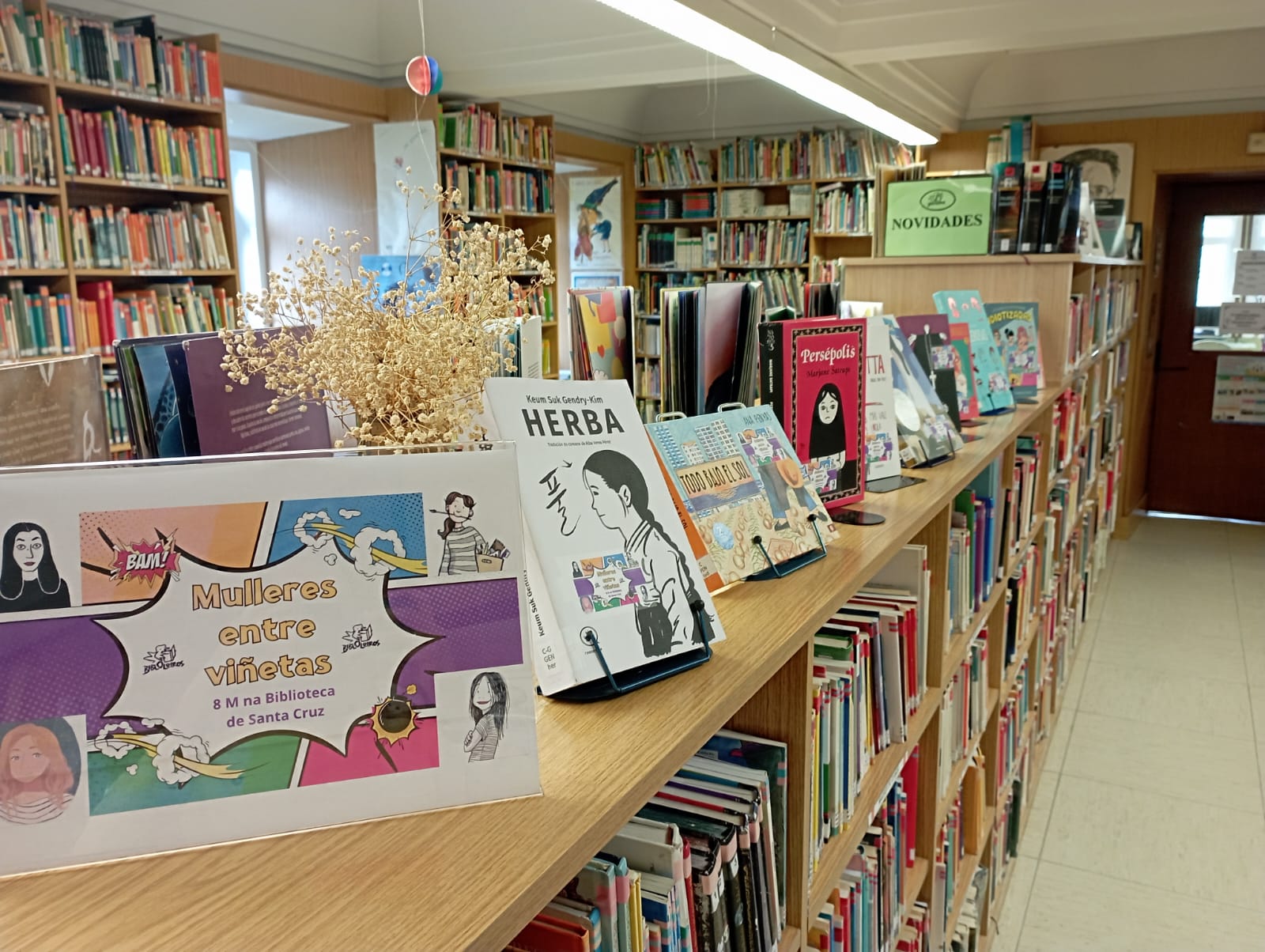 Na Biblioteca Pública Municipal Rosalía de Castro, en Santa Cruz a mostra bibliográfica titulada  “Mulleres entre viñetas”.