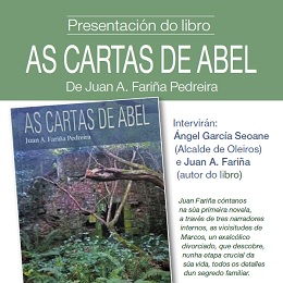 Oleiros, 2 de novembro de 2020-. O escritor e político de Bergondo Juan Fariña presenta o vindeiro venres día 6 de novembro, ás 20:00 horas na Casa Charry, a súa novela ‘As cartas de Abel’(Ed. Toxosoutos, 2020). Ademais do autor, o acto contará coa participación do alcalde Ángel García Seoane.
