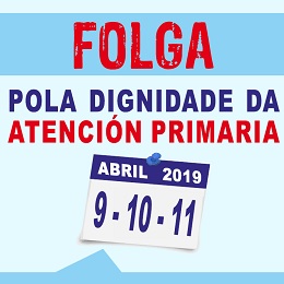 Oleiros, 8 de abril de 2019-. O Concello de Oleiros apoia a folga e todos os actos convocados para os días 9, 10 e 11 de abril cos que se pretende mellorar as condicións nas que se está a atender a poboación na atención primaria da sanidade pública de Galicia. Con esta convocatoria reclámase un aumento do orzamento para incrementar o persoal, rematar coa precariedade e contar cunha xerencia propia nos PAC, que non dependen da hospitalaria.