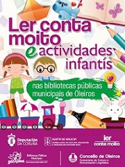 /documents/39407/55544/DLFE-27124.pdf/a5a598f5-7ba9-ef94-e79e-af3d80e05691Unha tempada máis, as Bibliotecas Municipais de Oleiros organizan actividades de promoción da lectura dirixidas a nenas e nenos. Entre os meses de outubro a decembro, nas sete bibliotecas municipais levaranse a cabo 44 sesións de diferentes actividades infantís para fomentar á lectura e animar a que as nenas e os nenos visiten as bibliotecas no seu tempo libre. Levarase a cabo a programación de Ler conta moito, os bebecontos, a hora do conto así como diversas actividades e obradoiros para adolescentes. Os folletos e carteis están distribuídos en todos os colexios de ensino público de Oleiros e tamén nas sete bibliotecas municipais.