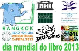 Do 18 ao 30 de abril, as bibliotecas municipais do Concello de Oleiros conmemoran o 23 de abril, Día Mundial do Libro, cun amplo abano de actividades, baixo o título “En abril, libros mil”. A UNESCO nomeou a cidade de Bangkokcapital mundial do libro 2013.