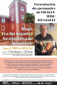 No Teatro As Torres (Santa Cruz), o xoves 17 de febreiro, ás 20:00 h., terá lugar a presentación dos poemarios "Sinais", "Coa luz negada" e "Na república da intimidade" de Ricardo Seixo Fernández.