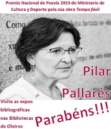 Pilar Pallarés, unha das voces máis singulares da poesía galega actual é Premio Nacional de Poesía 2019 do Ministerio de Cultura y Deporte, pola súa obra "Tempo fósil". O poemario constitúe unha magnífica obra, moi ben editada, na que reflexiona sobre a perda e a destrución, a partir da súa propia experiencia persoal, tras vivir o derribo da casa familiar a causa da ampliación do aeroporto de Alvedro. Fala da aniquilación dos soños dunha familia, pero tamén é sobre a derrota dos soños dunha clase social.