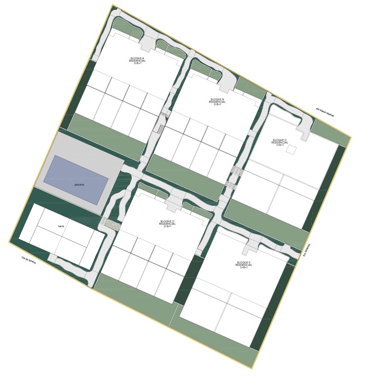 • Sinalar o volume máximo edificable ou sólido capaz en aplicación dos parámetros establecidos no PP, axustando as rasantes de implantación da planta baixa de cada un dos bloques Mantéñense as cotas de rasante perimetrais definidas no Proxecto de Urbanización, cos axustes de rasantes