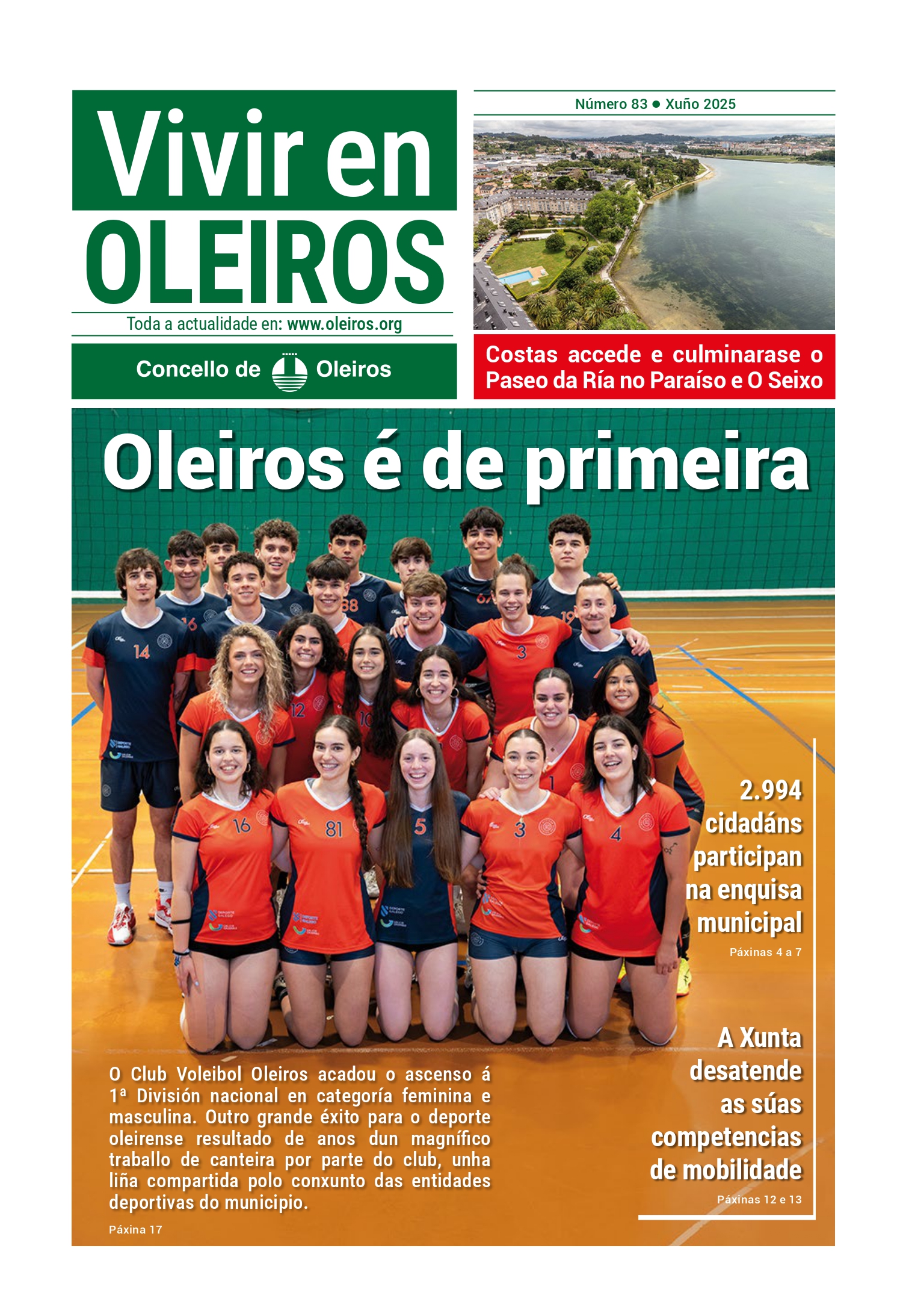 Os principais titulares son: Oleiros é de primeira; 2.994 cidadáns participan na enquisa municipal; Costas accede e culminarase o Paseo da Ría no Paraíso e O Seixo; a Xunta desatende as súas competencias de mobilidade.
