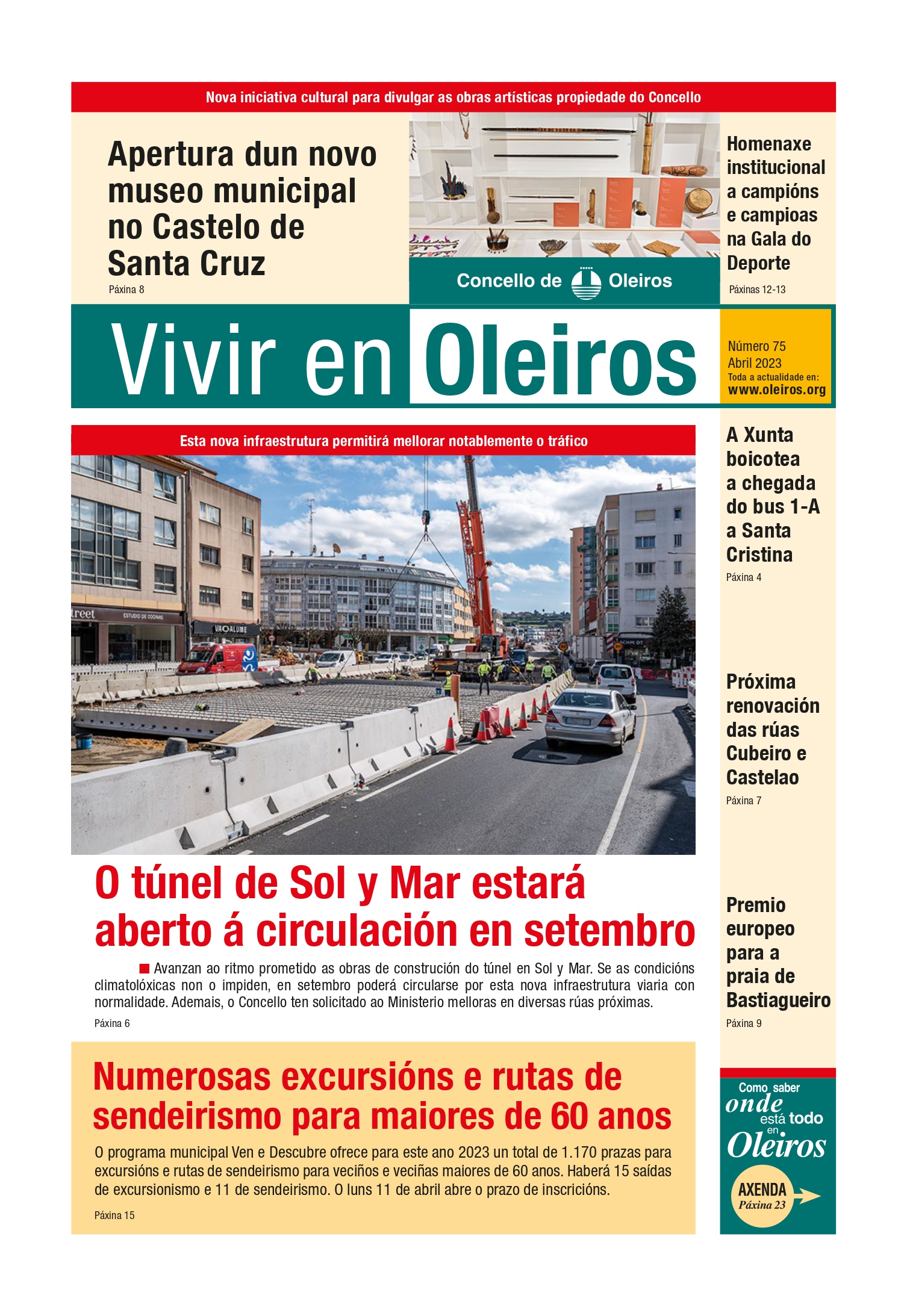 Os principais titulares son: O túnel de Sol y Mar estará aberto á circulación en setembro; Numerosas excursións para maiores de 60 anos; Apertura dun novo museo municipal no Castelo de Santa Cruz.