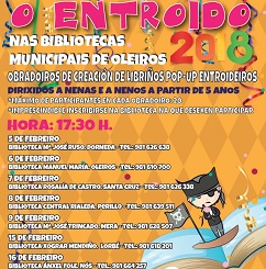 Oleiros, 30 de xaneiro de 2018-. As sete bibliotecas municipais acollerán Obradoiros de creación de libriños pop-up entroideiros dirixidos a nenos e nenas maiores de 5 anos. A actividade consiste na elaboración de sinxelos libros pop-up realizados con divertidos motivos relacionados co Entroido.