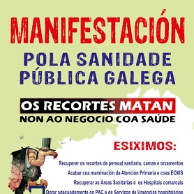 Oleiros, 6 de febreiro de 2019-. SOS Sanidade Pública ten convocada para este domingo unha manifestación en defensa do sistema sanitario público de Galicia. A marcha partirá ás 12:00 horas da Alameda de Santiago de Compostela e contará co apoio do Concello de Oleiros.