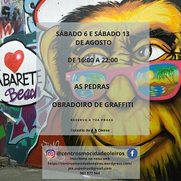 Oleiros, 28 de xullo de 2022-. Os días 6 e o 13 de agosto, de 16:00 a 20:00 horas, realizarase un obradoiro de graffiti na Casa da mocidade das Pedras. É unha actividade gratuíta dirixida a mozas e mozos de entre 14 e 30 anos.