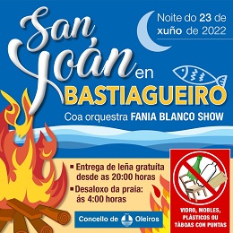Oleiros, 22 de xuño de 2022-. Oleiros prepárase para unha gran noite de festa este xoves en todo o municipio. En total, hai solicitadas 567 autorizacións para realizar fogueiras nas zonas permitidas. Na praia de Bastiagueiro haberá música desde as 22:30 horas coa orquestra Fania Blanco Show.