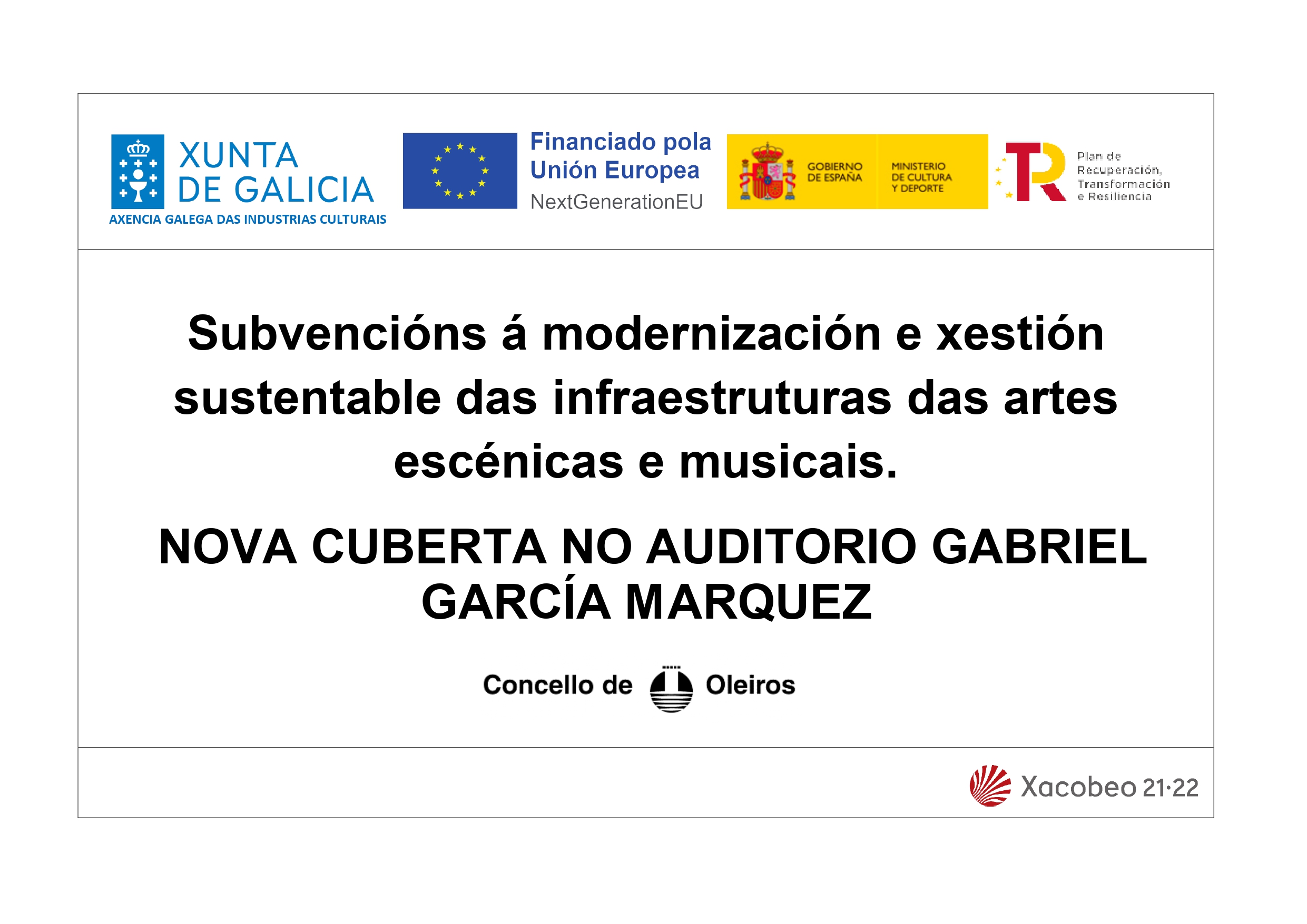 Ambas actuacións persiguen a modernización e xestión sutentable das infraestructuras das artes escénicas e musicais, estando financiada pola Unión Europea dentro do Plan de Recuperación, Transformación e Resilencia –NextGeneration EU, apoiado pola Xunta de Galicia.