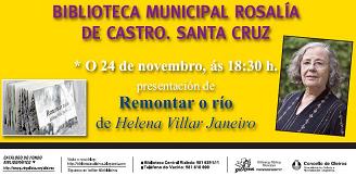 El lunes 24 de noviembre, a las 18:30 h. tendrá lugar en la Biblioteca Rosalía de Castro de Santa Cruz la presentación del libro "Remontar o río" de la escritora de Becerreá Helena Villar Janeiro.