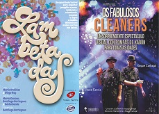 Sinopse: Os Fabulosos Cleaners é un espectáculo de pompas de xabón para todos os públicos. Unha extraordinaria experiencia visual para participar toda a familia. Dous operarios da limpeza do teatro, descobren por casualidade as múltiples posibilidades que lles ofrecen as súas ferramentas de traballo combinadas con auga e xabón. A partir de aí, os personaxes emprenderán unha excitante viaxe conducidos polas fantásticas pompas e burbullas. O público sorprenderase e gozará con estas máxicas burbullas; pompas transparentes, con fume, con vapor, pequenas, grandes, estáticas ou voando polo escenario. O espectador camiñará da man destes personaxes por un mundo máxico, cheo de cor e de moito, moito humor, e verase sorprendido dentro dun patio de butacas repleto de miles de pompas de xabón.