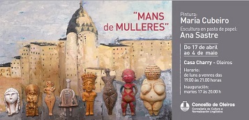 O martes 17 de abril ás 20.00 horas na Casa Charry de Oleiros terá lugar a inauguración da Exposición de pintura de María Cubeiro e escultura en pasta de papel de Ana Sastre, co nome “Mans de Mulleres” e contará coa presenza das artistas.