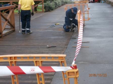 Estes dias, estase a facer os traballos de mantemento e reparación do tramo do paseo maritimo Da Ria, comprendido entre o aparcadoiro da Mazota e o residencial Habitat, na fachada maritima da ria do Burgo. Os traballos consisten na reposición de rastreles e tornilleria nova, que por mor das inclemencias metereoloxicas, e o desgaste habitual neste tipo de materiais, ten dita infraestructura. Os traballos estan xa case rematados a falla de pequenos axustes de reaprete de tornilleria de suxección. Con esta actuación xa queda todo o tramo transitable para os peons, e disfrute dos veciños/as, que usan a diario dita infraestructura.