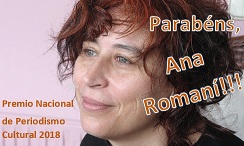 Ana Romaní fue galardonada con el Premio Nacional de Periodismo Cultural del Ministerio de Cultura y Deporte. El jurado motivó la elección de Romaní “en su larga trayectoria en el periodismo, su constante trabajo de promoción de la cultura y de la radio con formatos propios”, así como por “su visión de feminismo crítico y compromiso social”.El Ministerio de Cultura y Deporte reconoce con este premio la labor de profesionales del periodismo que, bien con sus obras, bien a través de su participación activa en diversos ámbitos de la creación artística o literaria, fomentan las actividades culturales contribuyendo al enriquecimiento del patrimonio cultural de España.