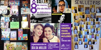 - Exposición de carteles “Mulleres que cambiaron o mundo” en el que figurarán mujeres tan representativas como Clara Campoamor, Benazir Buttho, Amelia Earhart, etc, junto con una muestra de libros, DVD y CD relacionados con estas mujeres, escritos por ellas o que hablan de ellas.