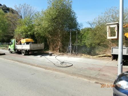 Traballos de restauración na sinaletica informativa do Parque dos veciños. Traballos consistentes en restauración das estructuras de soporte da sinaletica, chorreado con arena, imprimación, colocación dos elementos de fixación dos carteis,  pintado de toda a estructura, e colocación da nova sinalización.