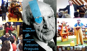 - En todas las bibliotecas, exposiciones y muestras bibliográficas con obras de Antonio Fraguas y ensayos sobre este autor, así como libros de etnografía, antropología, fiestas populares y costumbres de Galicia. Para el público infantil, crucigramas y otros pasatiempos sobre el autor homenajeado en las Letras Gallegas de este año.