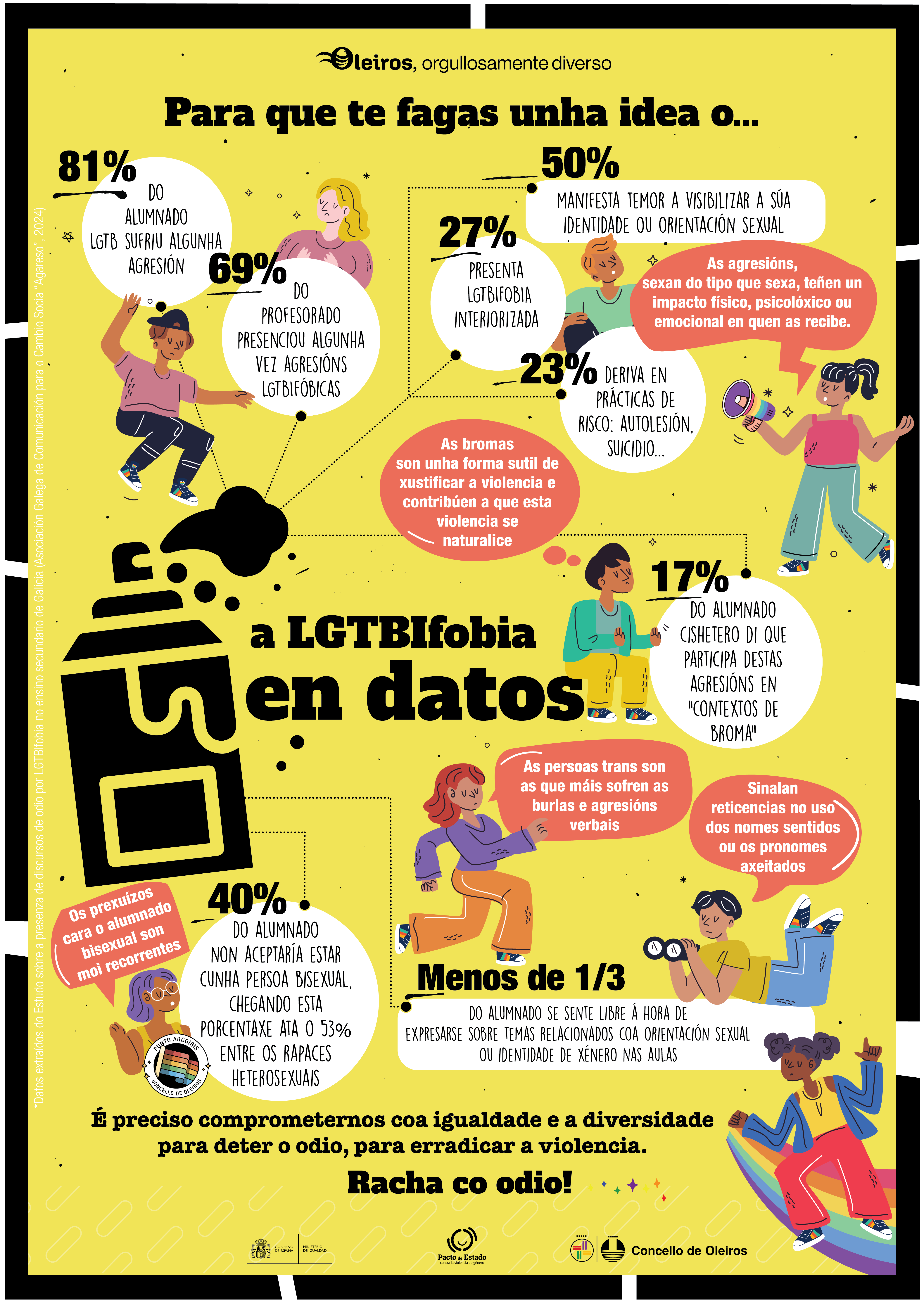Neste cartaz recóllense cifras en materia de violencias LGTBIfóbicas nos centros de ensino de secundaria en Galicia.