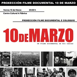 Atrás Proxección do documental 10 DE MARZO, este venres na Fábrica