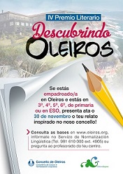 O Servizo de Normalización Lingüística do Concello de Oleiros convoca o IV Premio Literario Descubrindo Oleiros, unha proposta que busca poñer en común promover a lingua e dar a coñecer o municipio.