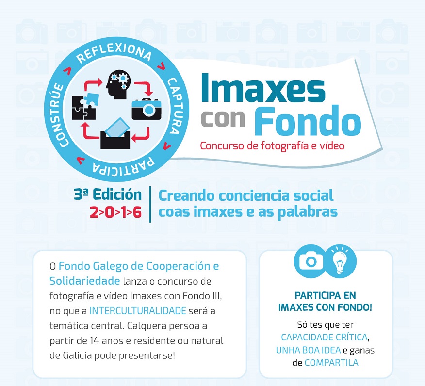Oleiros, 11 de outubro de 2016-. O Fondo Galego de Cooperación e Solidariedade, do que forma parte o Concello de Oleiros, vén de ampliar ata o 15 de novembro o prazo para concorrer ao certame ‘Imaxes con Fondo’. Atendendo ao actual contexto internacional, marcado polas migracións e o desprazamento de persoas refuxiadas, esta terceira edición convida a reflexionar sobre a interculturalidade a través de fotografías e pezas audiovisuais.
