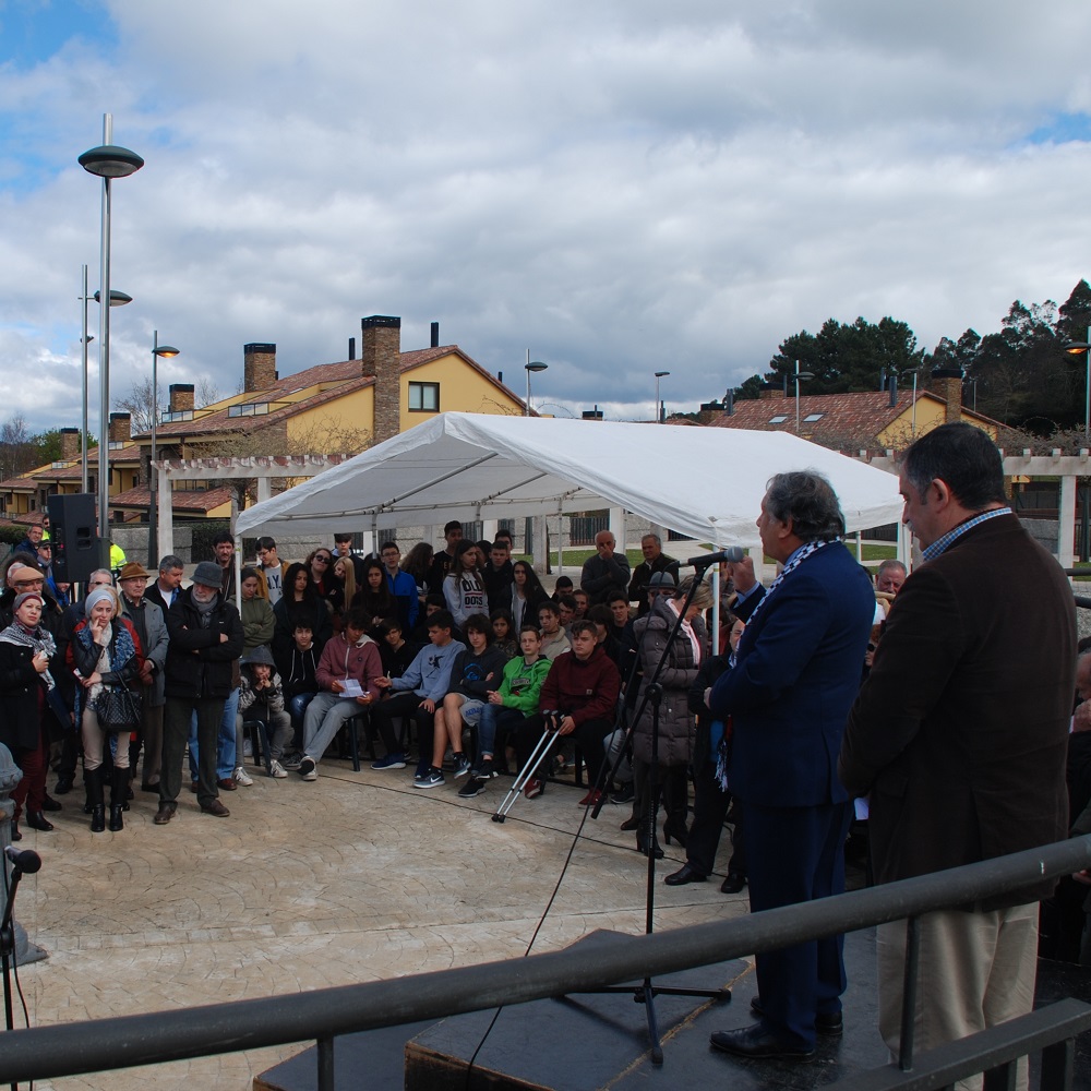 Oleiros, 24 de marzo de 2017-. O embaixador Palestino en España, Musa Amer Odeh, o alcalde de Oleiros, Ángel García Seoane, a artista Najla Shami, o alumnado do IES María Casares e máis dun cento de veciños e veciñas participaron esta mañá no acto de celebración do Día da Terra Palestina que organizou o Concello de Oleiros na praza de Belén. Autoridades, mozos, mozas e varios asistentes ao acto participaron na plantación dunha oliveira coa que se pretende simbolizar a amizade entre o pobo palestino e o pobo de Oleiros.