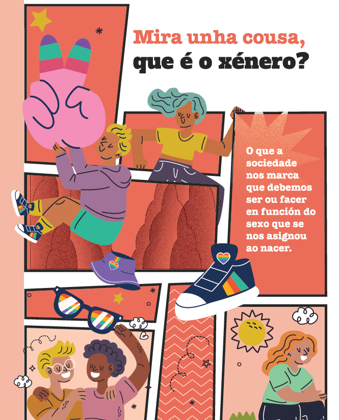 Neste díptico atoparás resposta ás diferencias entre sexo, xénero, identidade e expresión de xénero a nivel conceptual, exposto dunha forma sinxela e práctica.