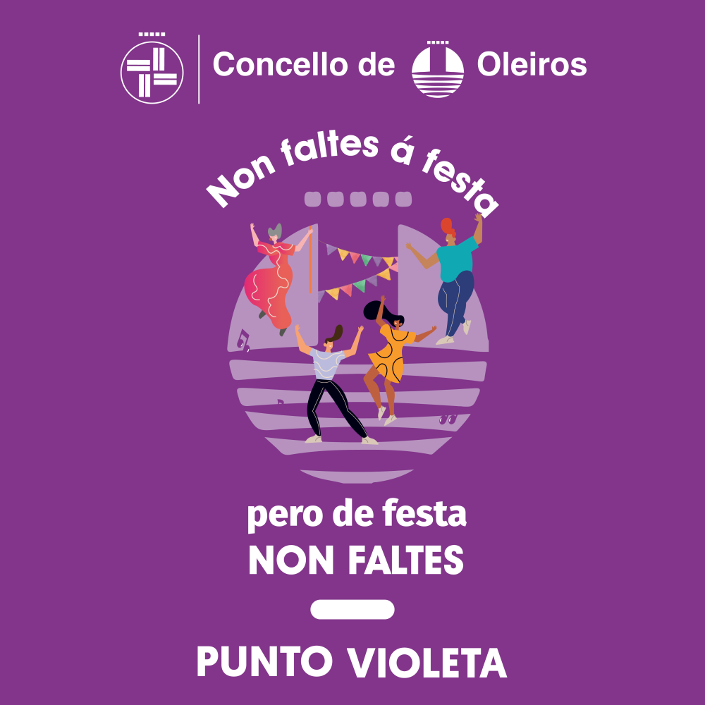 No seu compromiso co prevención e actuación fronte ás violencias machistas, desde o Concello de Oleiros instálanse Puntos Violeta ao longo de todo o verán nos festexos e celebracións nocturnas nas diferentes parroquias, dándolle continuidade á campaña «Non faltes á festa, pero de festa non faltes. Por unhas festas libres de violencias machistas».